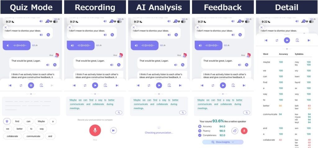 リアルタイムに生成された自分だけの教材でビジネスに使う英語の発音をマスター出来ます。
